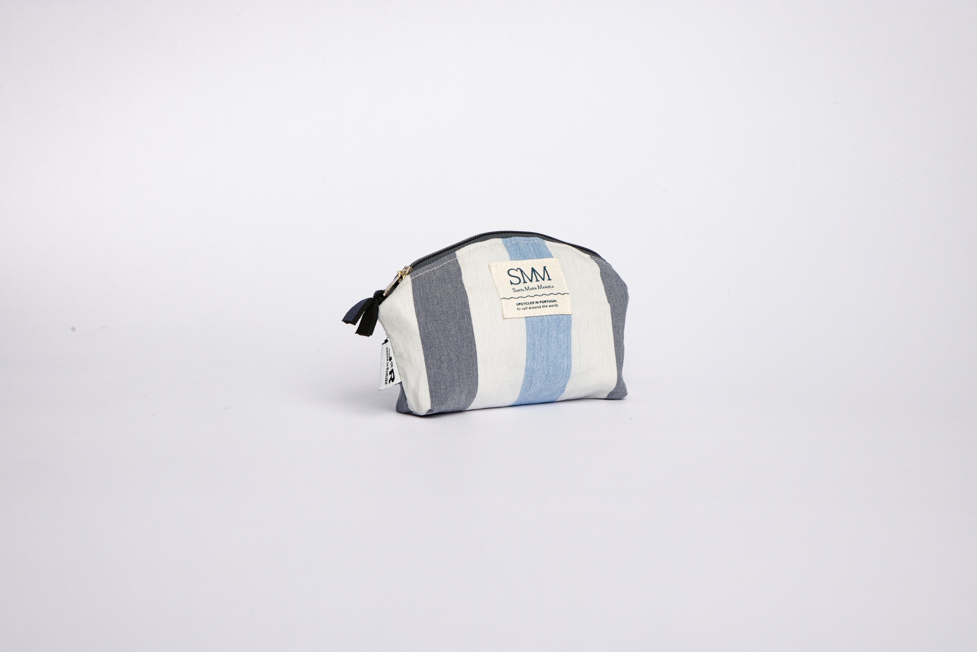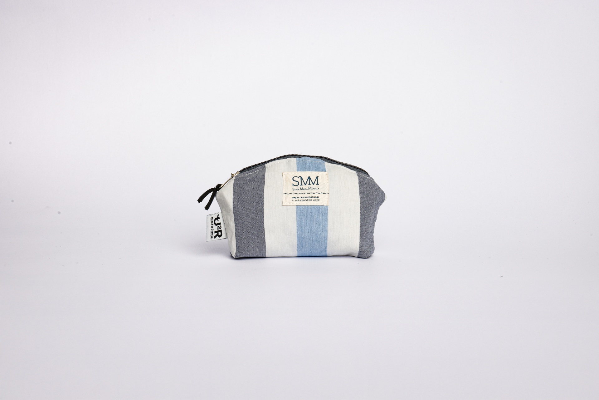 Feitas à mão pela U2R, estas peças são criadas com fio SEAQUAL® a partir de plástico oceânico recuperado e com velas originais do Santa Maria Manuela, um bacalhoeiro português de 1937 transformado em navio de turismo com forte compromisso com a sustentabilidade. Cada peça é única: o corte, a textura e as marcas do tecido contam a sua própria viagem.