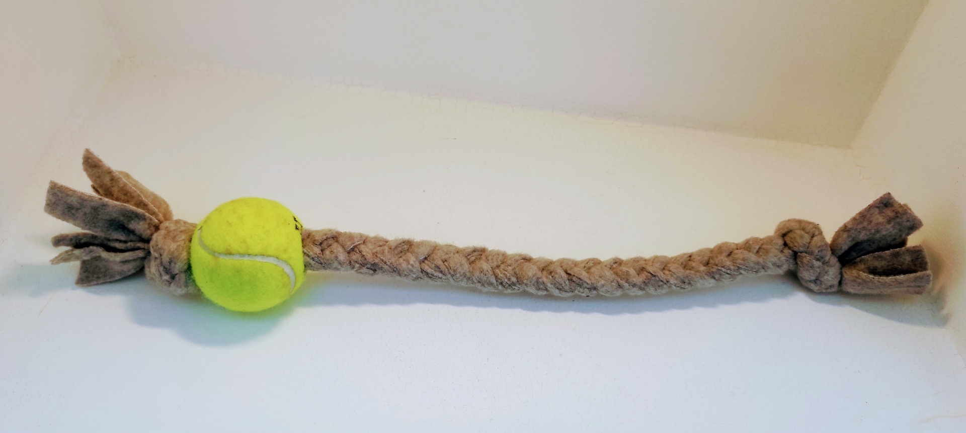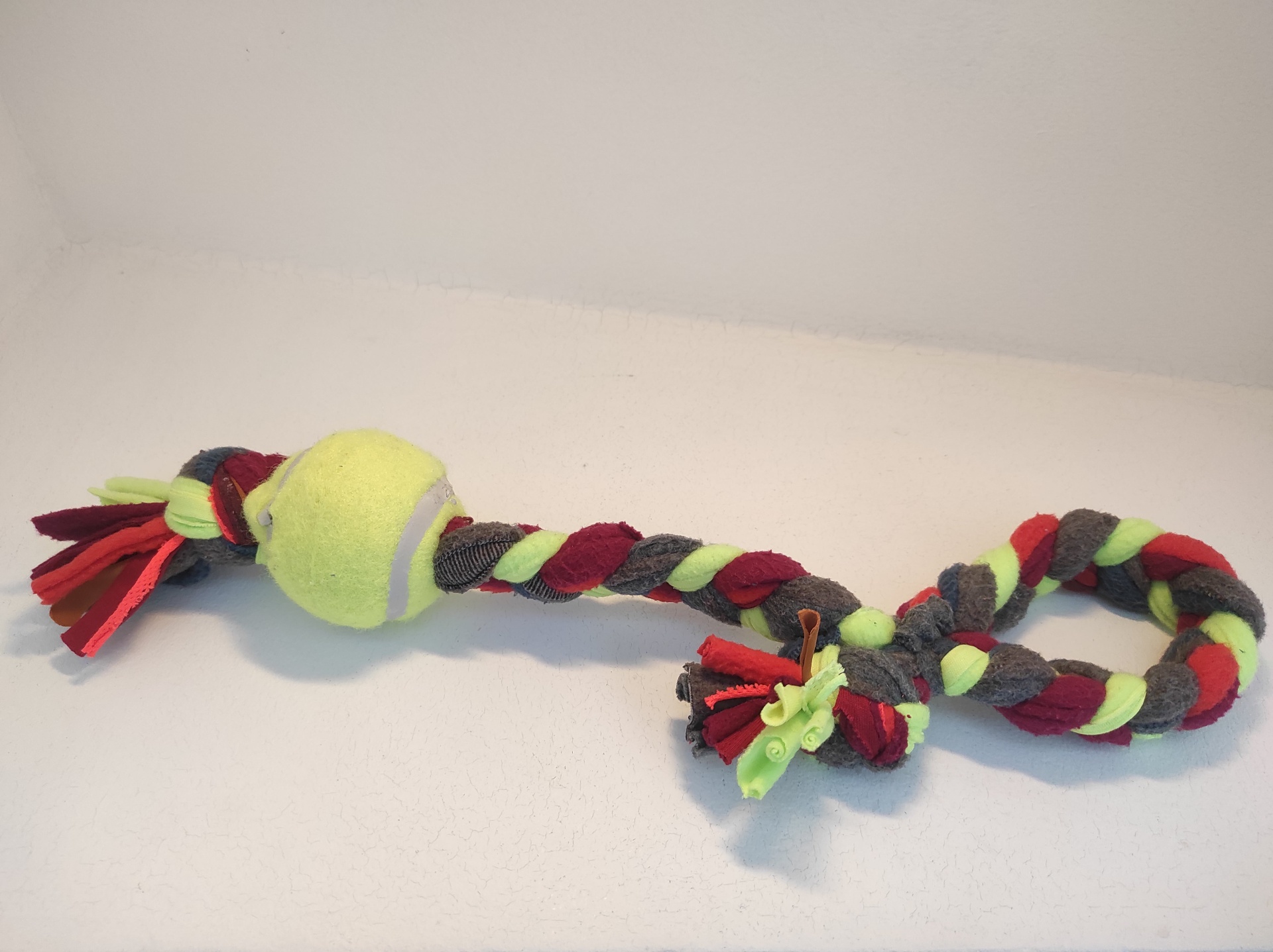 Peça feita com desperdício de tecido e bolas utilizadas.