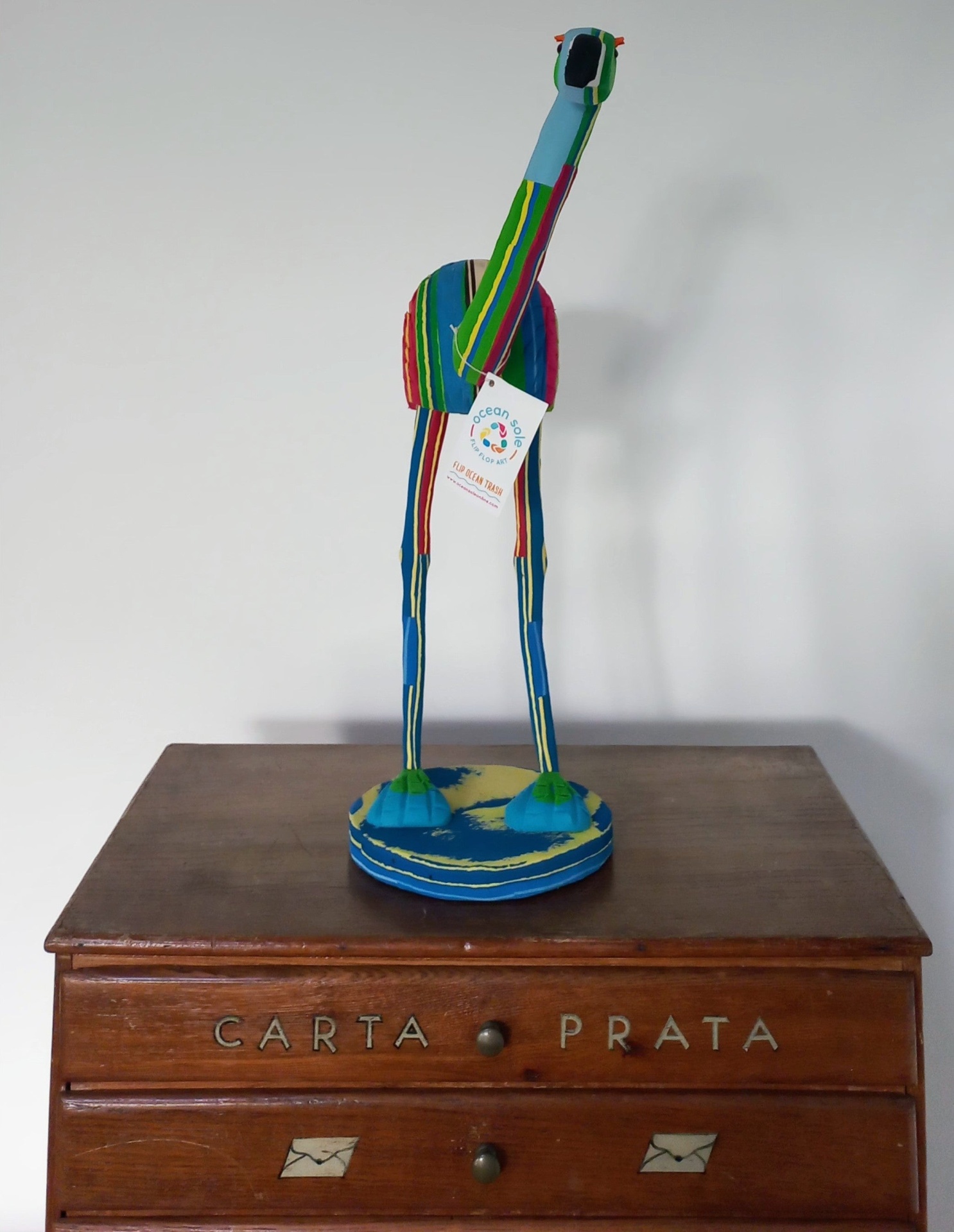 Todos os produtos Ocean Sole são feitos de chinelos reciclados que são recolhidos nas praias, vias navegáveis e aterros no Quénia. Estes produtos são esculpidos à mão por artesãos Quenianos e, portanto, todos são únicos e diferem nas cores.