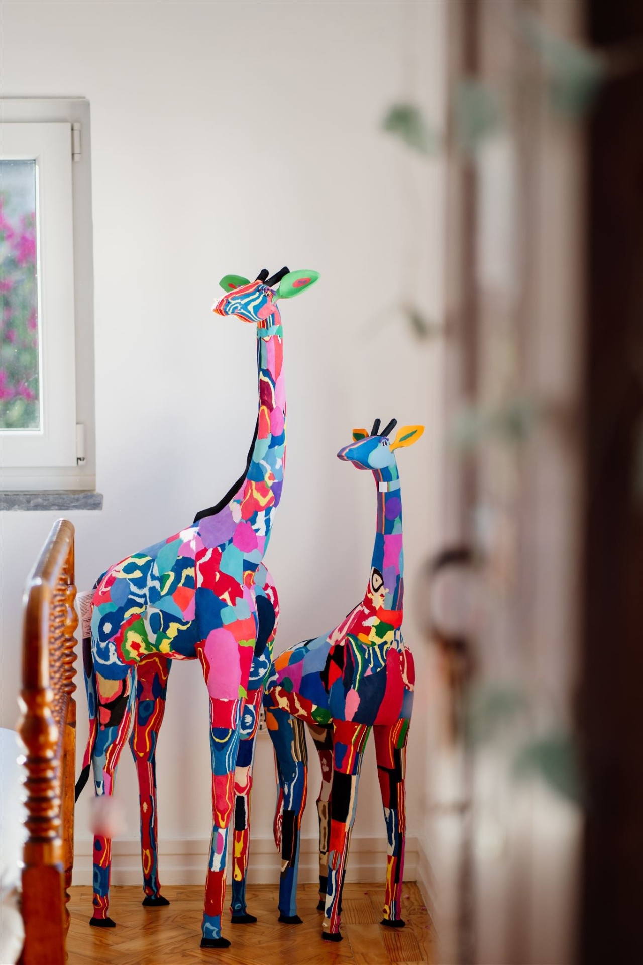 Esta peça simboliza a intuição, a calma, a suavidade e a grandiosidade. É também símbolo de força e persistência contra a protecção ambiental. Esta girafa enche qualquer casa de cores e alegria. É muito especial!
