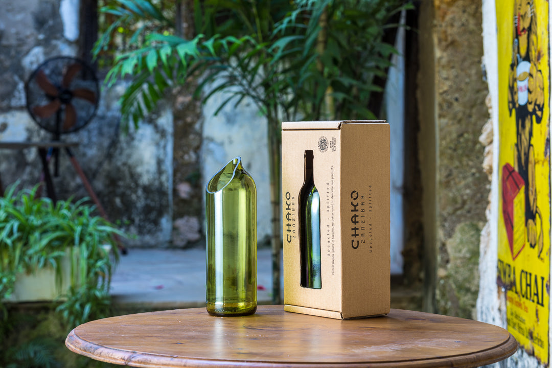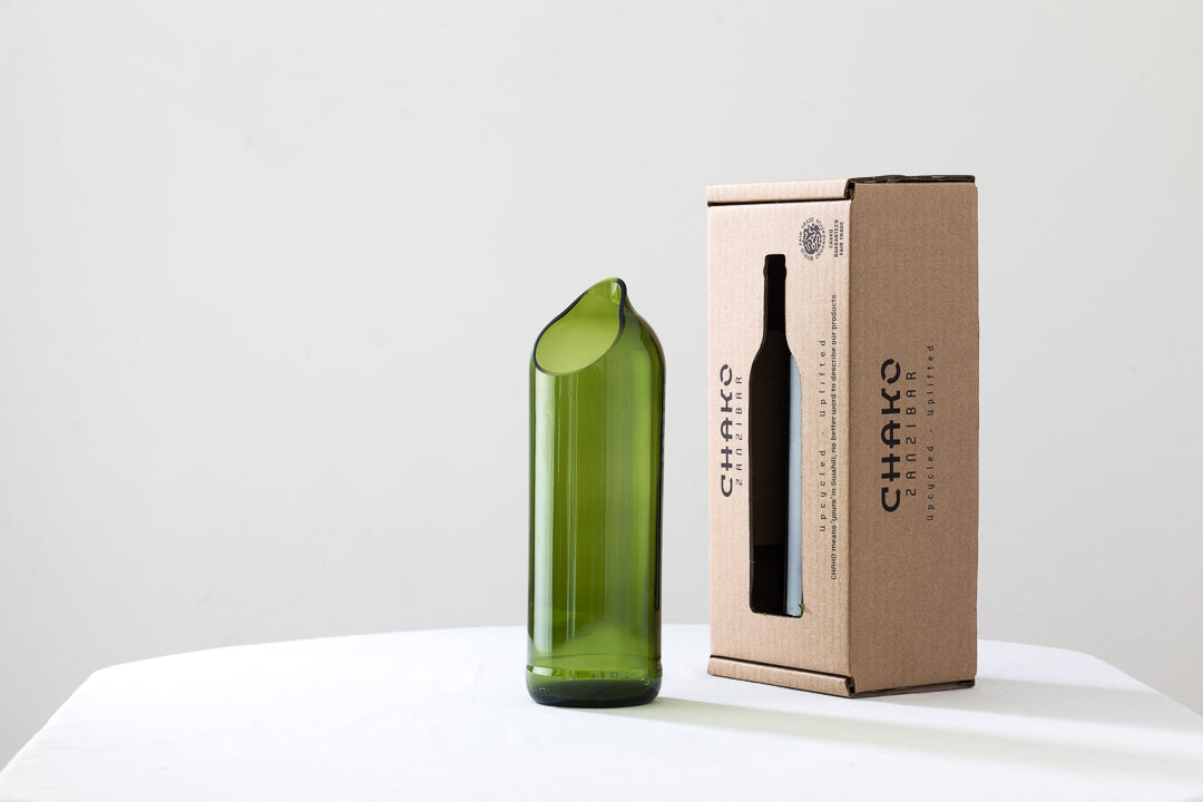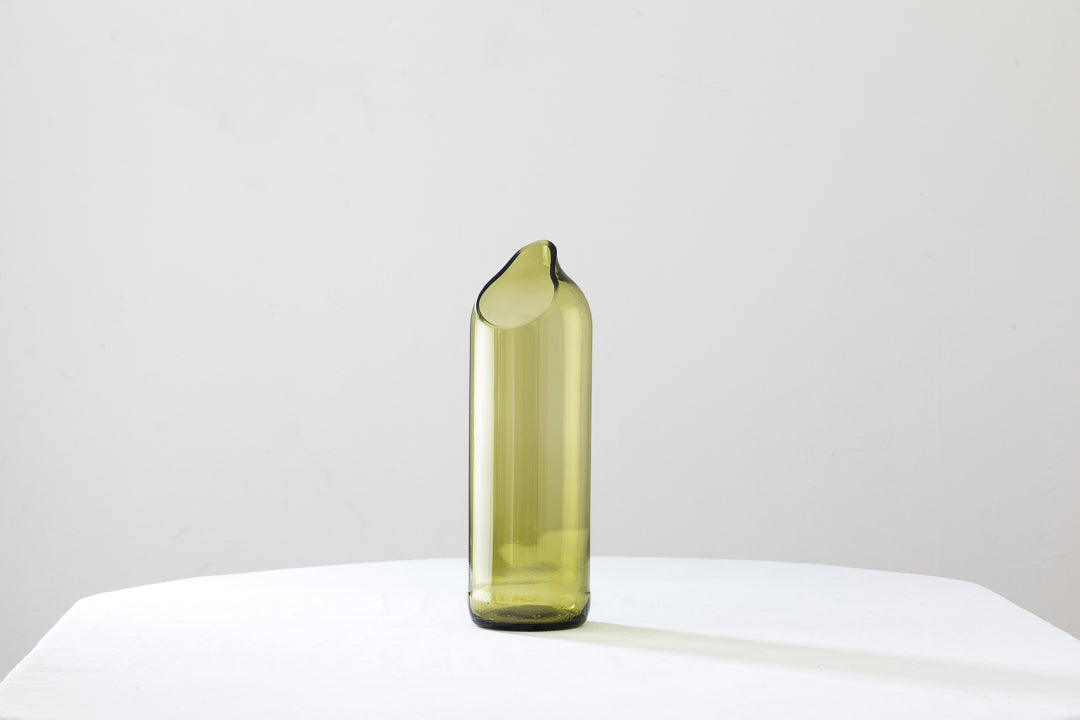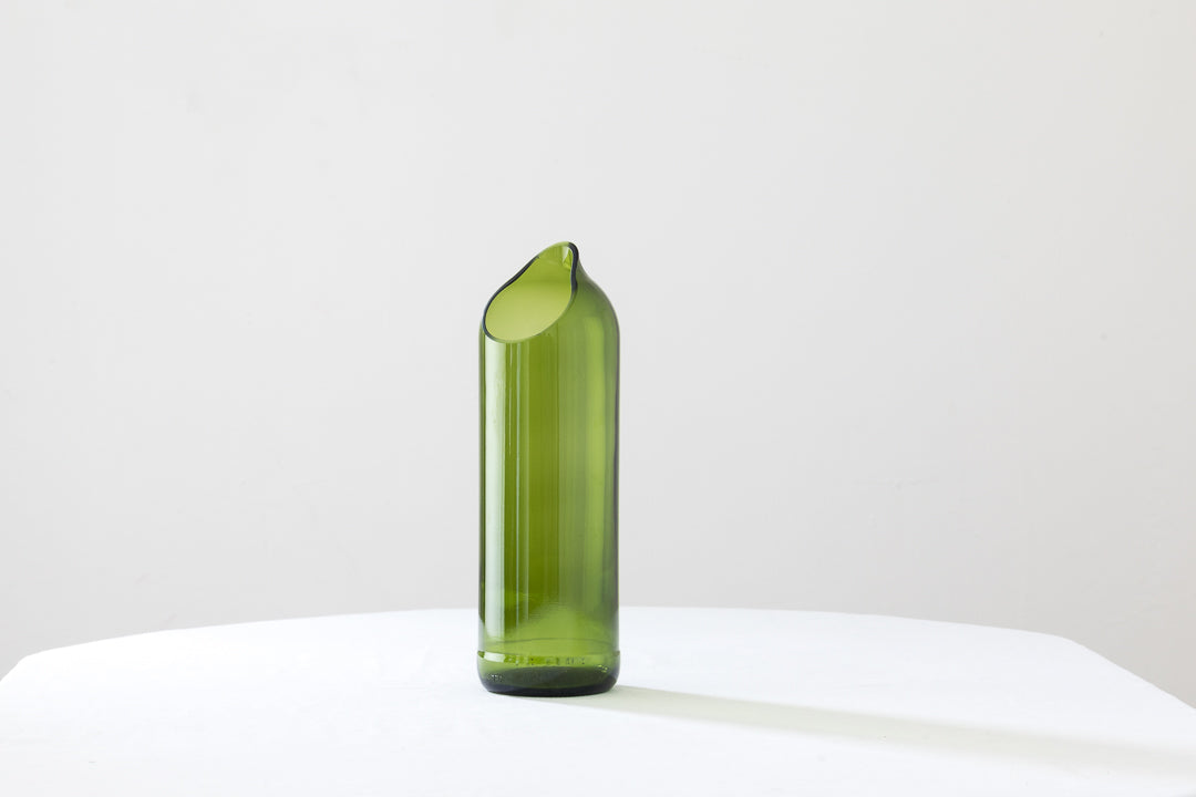 A sua beleza inspira o nome desta jarra, igualmente bela, feita através do reaproveitamento de uma garrafa de vinho e com uma abertura que de alguma forma relembra uma gota.