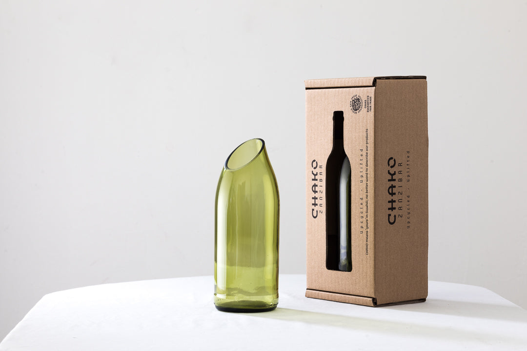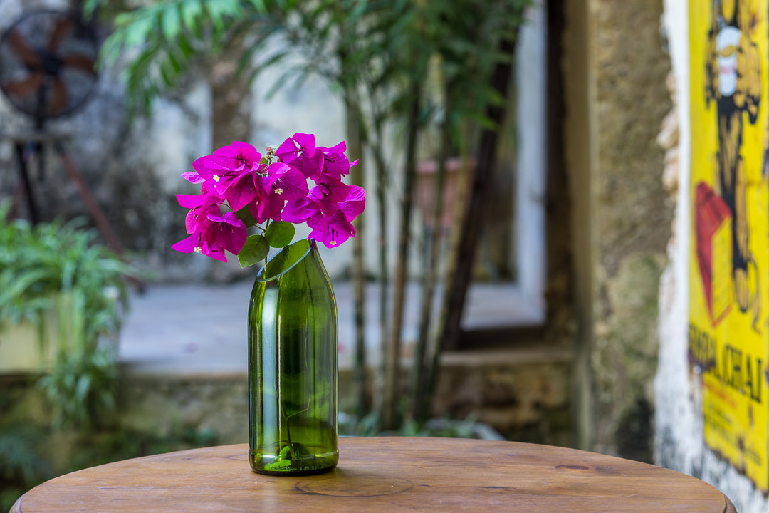 Da sua especificidade, nasce a inspiração para o nome desta jarra, feita através do reaproveitamento de uma garrafa de vinho.